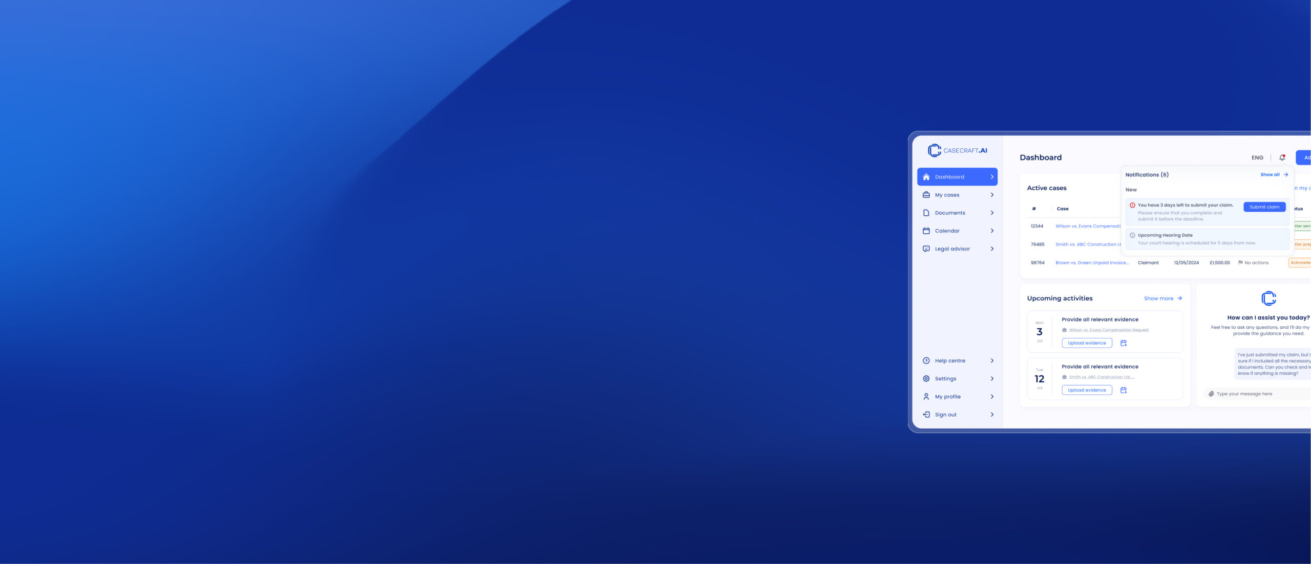CaseCraft.AI is AI-powered platform streamlines the small claims process up to £10,000, ensuring accurate and efficient claim submission. If you are owed money or have an issue with a product or service, you can file your claim online