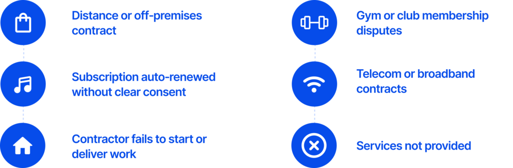 - Distance or off‑premises contracts: You booked a service online or over the phone and cancelled within 14 days. The cooling‑off period under UK rule entitles you to cancel for any reason.