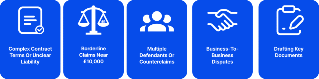 - High stakes or borderline value. Claims close to or exceeding £10,000 may fall into the fast track, where cost recovery rules differ. If losing could bankrupt your business or harm your reputation, professional representation is wise.