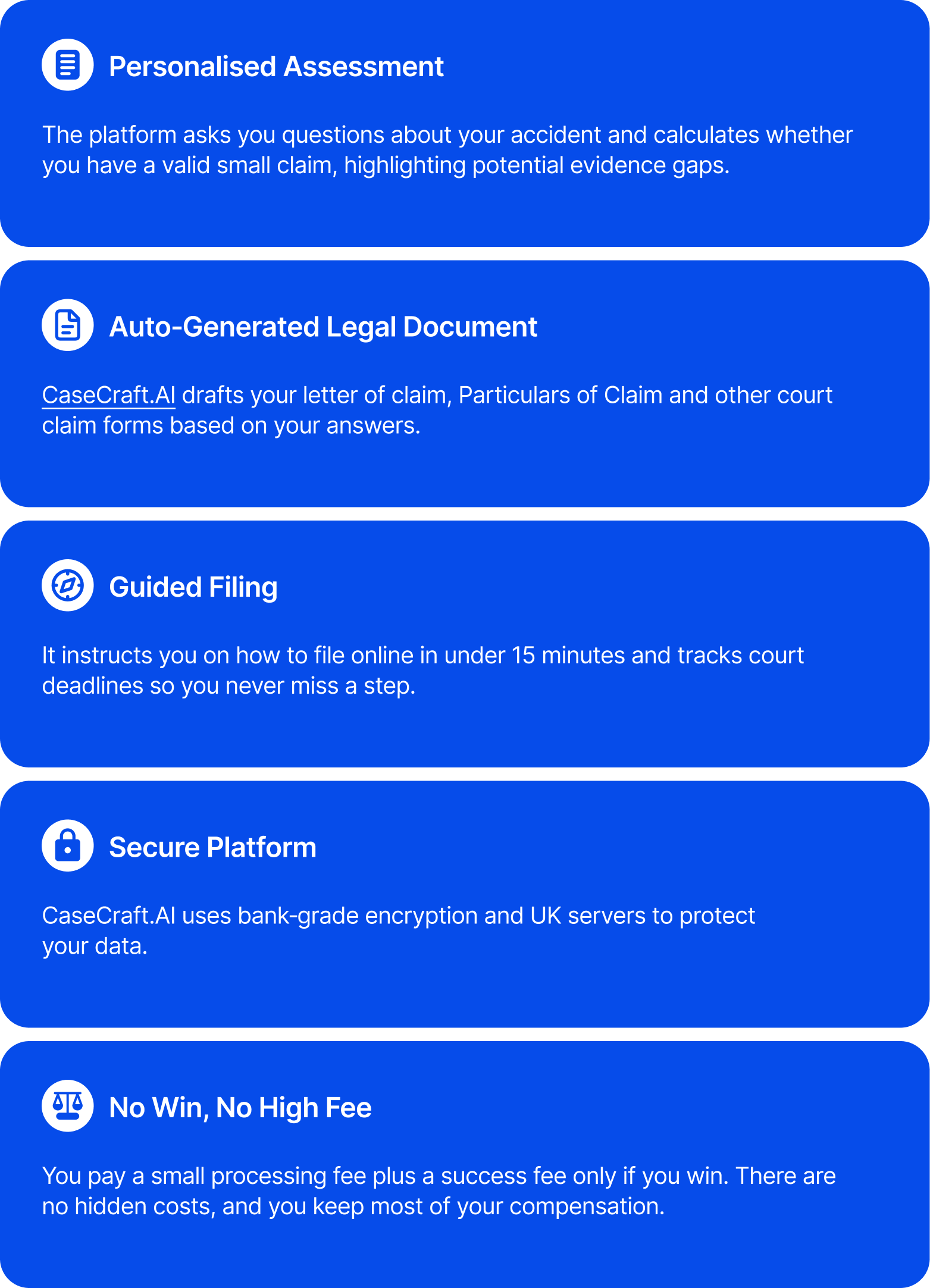 CaseCraft.AI is an AI‑powered platform built in partnership with UK law firm Sterling Law. It was launched to democratise access to justice and simplify the small claims process. CaseCraft.AI aims to reduce delays and errors by guiding users through each step.