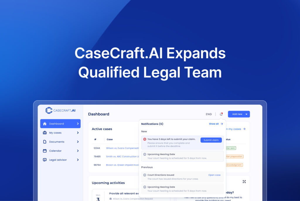Because small claims cost recovery is limited, it’s best to keep your costs as low as possible. In most cases, small claims are relatively simple so you can save money by not hiring a solicitor. CaseCraft’s AI-powered platform makes things even simpler, so you can benefit from a straight-forward intuitive process, without unnecessary legal fees.