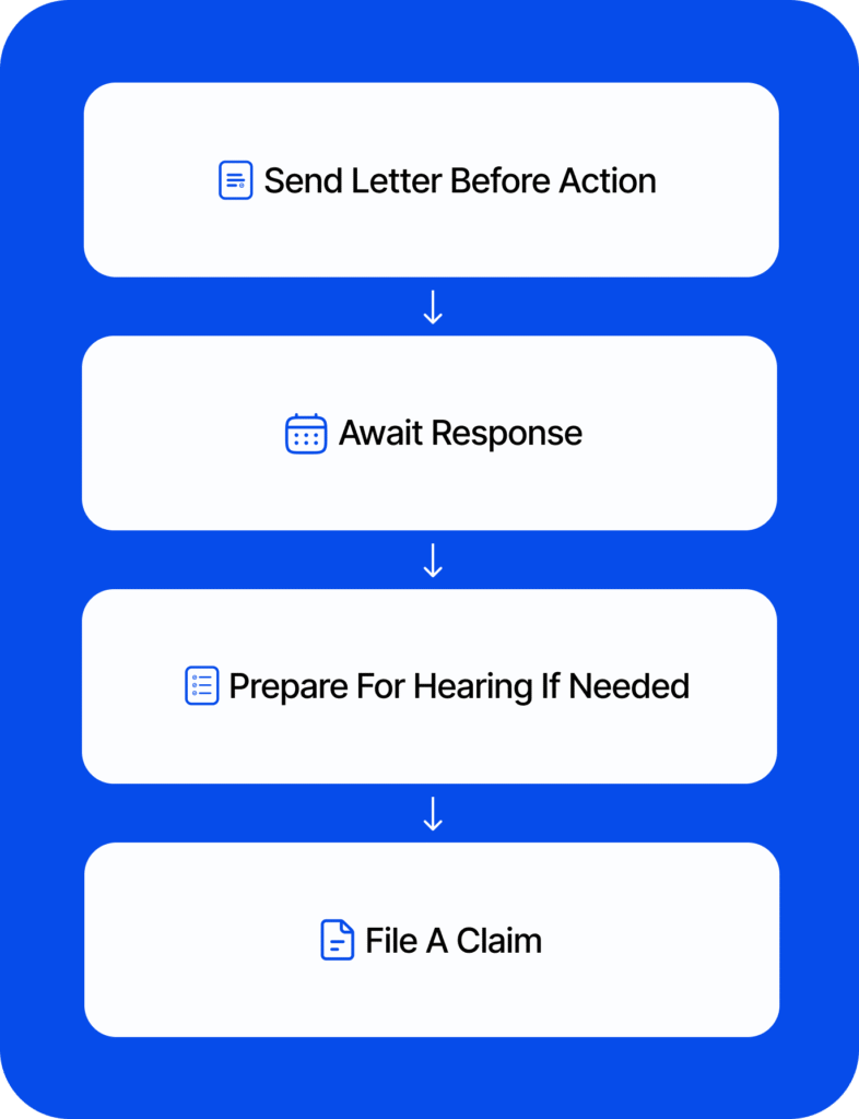 - Send a Letter Before Action (LBA): Before issuing a claim, you must send the other party a formal letter outlining the breach, the remedy you seek (e.g., payment of £X), and a deadline to respond. This letter shows you attempted to resolve the matter amicably. It must be clear, concise and polite.